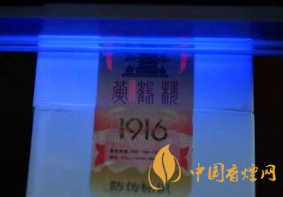 三、激光油墨。在紫外燈照射下,舊版防偽標(biāo)貼只在“1916”左右出現(xiàn)兩只金黃色飛翔的鶴;新版防偽標(biāo)貼還會在黃鶴樓城樓圖案的左右呈現(xiàn)兩只粉紅色的飛翔的鶴,另外在“黃鶴樓”的“黃”字右邊呈現(xiàn)一粉紅色的長條塊。