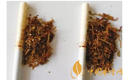 假煙:水松紙顏色淡,煙絲是霉變?nèi)~絲和再造煙葉,雜質(zhì)成分居多。